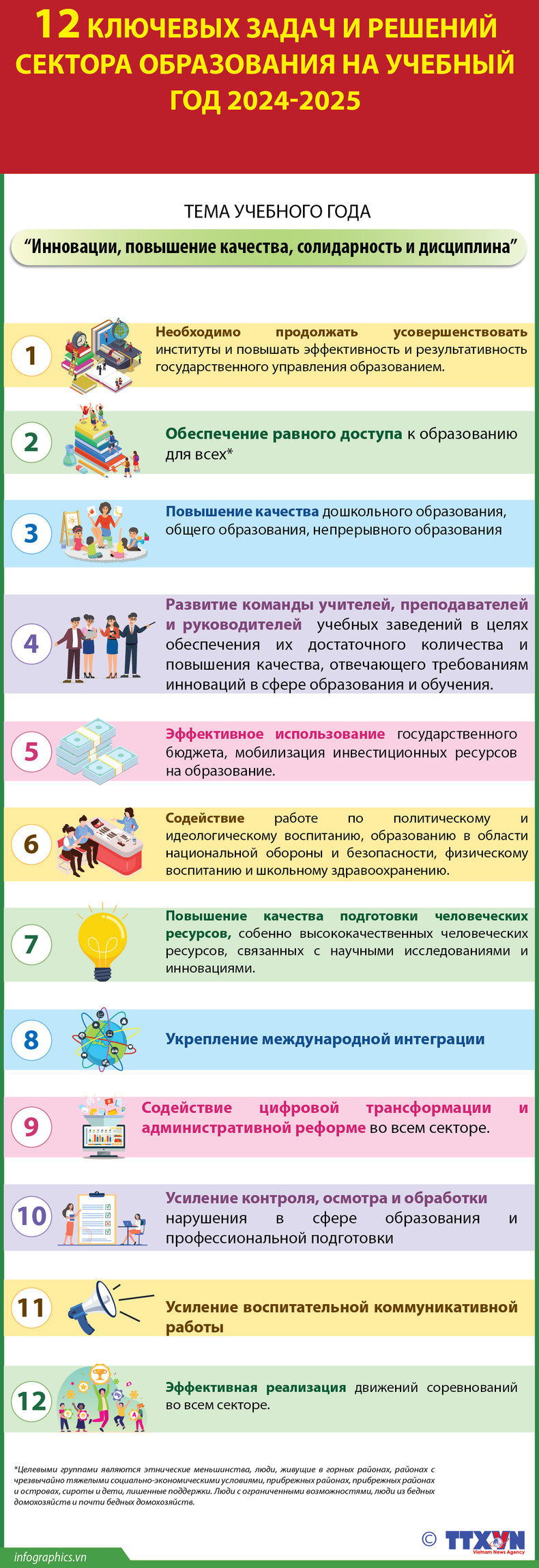 Министерство образования и подготовки кадров обозначило 12 ключевых задач и решений в стратегическом плане на 2024-2025 учебный год под названием «Инновации, повышение качества, солидарность и дисциплина».