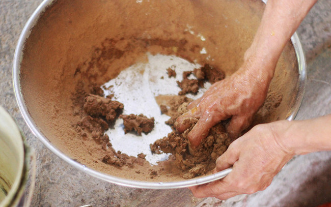 Процесс изготовления благовоний начинается с смешивания смеси со многими ингредиентами и водой.