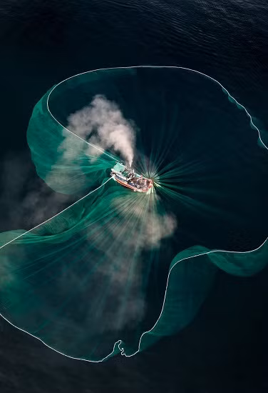 В категории аэрофотосъемки (дрон) фотограф Нгуен Нгок Тхиен (г. Хошимин) получил второй приз за свою работу «Ловля рыбы утром».