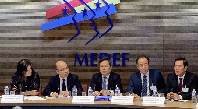 Во второй половине того же дня Заместитель министра планирования и инвестиций Вьетнама Ву Дай Тханг и Заместитель председателя Французско-вьетнамского делового совета Селин Шарпи провели семинар по вопросам о вьетнамском и французском бизнесе.