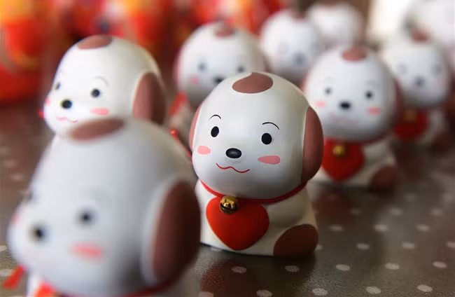 Народные умельцы занимаются в эти дни изготовлением хуэйшаньских глиняных статуэток, расписанных по случаю приближающегося года Собаки по лунному календарю.