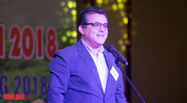 Посол Палестины во Вьетнаме Саади Салама выступает на мероприятии. Фото: Тхань Тхе