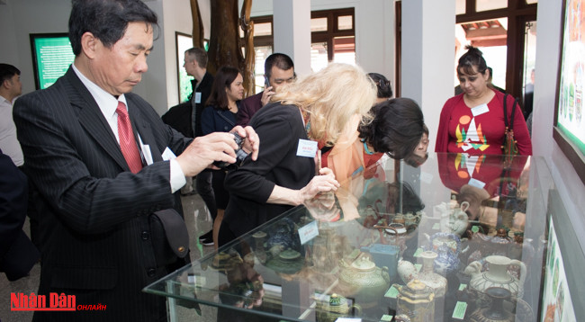В рамках программы делегаты посетили Музей культур вьетнамских народностей, культурное чайное пространство и экологическую чайную деревню в общине Танкыонг (город Тхайнгуен), чтобы познакомится с процессом производства оригинального чая в этой местности.