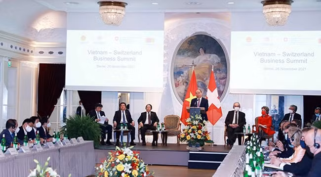 На форуме Президент Нгуен Суан Фук призвал швейцарские предприятия инвестировать во Вьетнам и сотрудничать с вьетнамскими предприятиями в тех областях, где швейцарские предприятия имеют сильные стороны и которым Вьетнам уделяет приоритетное внимание, в частности в банковском деле и финансах, науке и высоких технологиях, инновациях и цифровой трансформации.