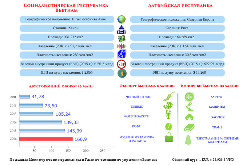 Нянзан Онлайн - 12 февраля 2017 года Вьетнам и Латвия отметили 25-летие (1992 - 2017 гг.) установления дипломатических отношений. В настоящее время Вьетнам является одним из крупнейших торговых партнеров Латвии в Азии.