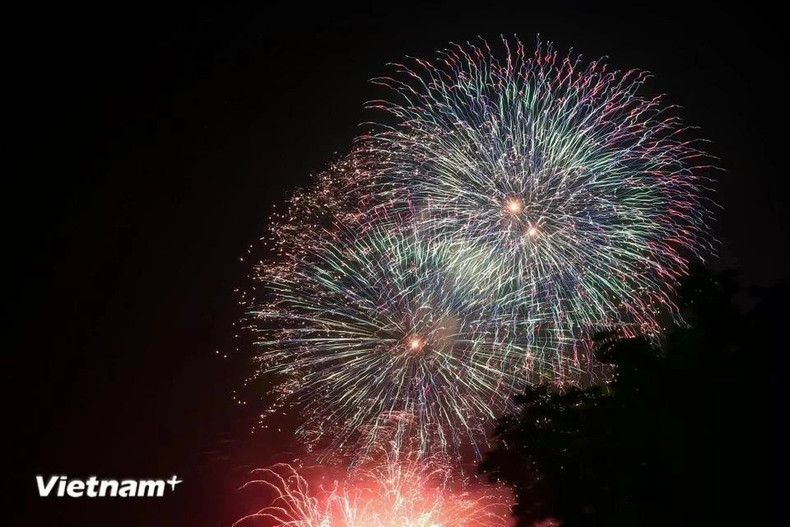 | Фейерверк освещает небо над озером Ванкуан (район Хадонг). (Фото: Вьетнам+) |