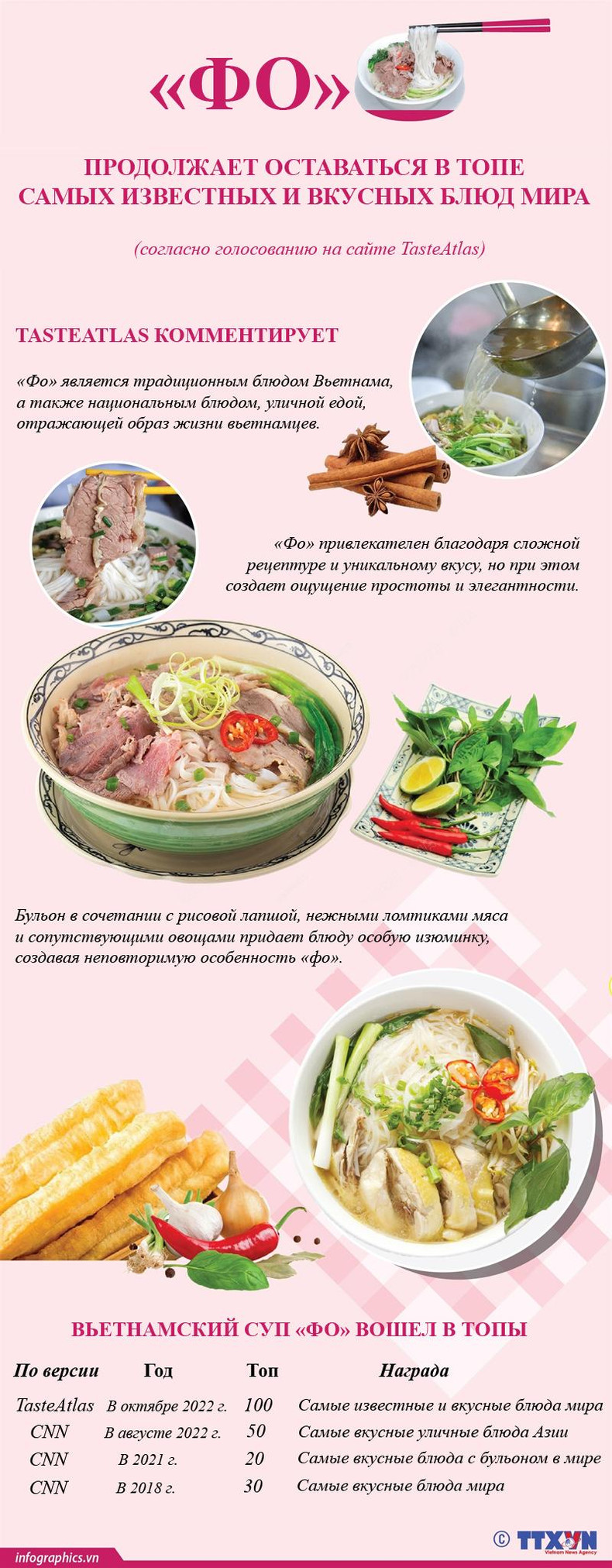 Суп «фо», квинтэссенция вьетнамской кухни, на днях вошел в список 100 самых известных и вкусных блюд, опубликованный на известном кулинарном сайте TasteAtlas.