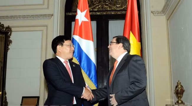 Министр иностранных дел Вьетнама Фам Бинь Минь (слева) и Министр иностранных дел Кубы Бруно Родриге. Фото: VNA