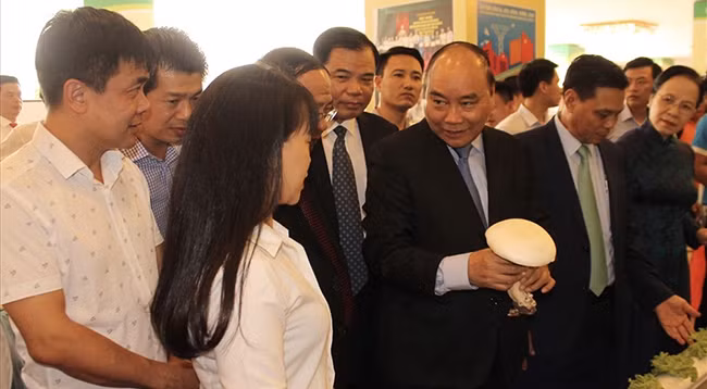 Премьер-министр Нгуен Суан Фук посещает стенды, на которых представлены сельскохозяйственные продукты. Фото: laodong.vn