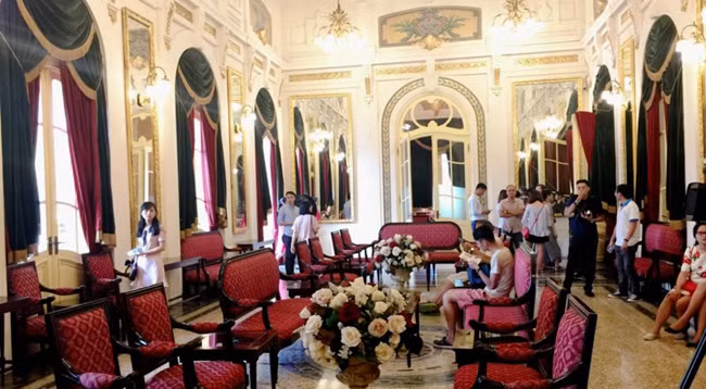 Сначала гид рассказывает посетителям об истории и архитектуре театра. Фото: plo.vn