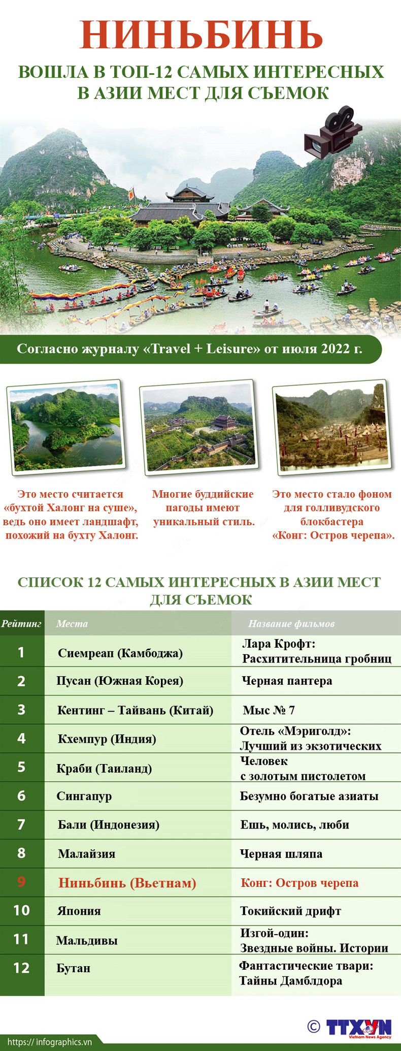 [Инфографика] Ниньбинь вошла в топ-12 самых интересных в Азии мест для съемок