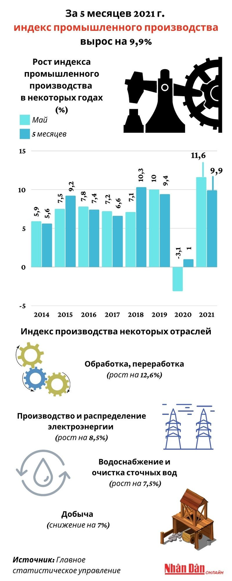 [Инфографика] За 5 месяцев 2021 г. индекс промышленного производства вырос на 9,9%