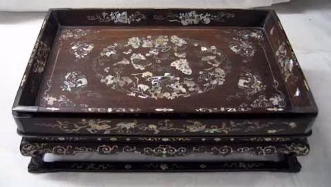 Поднос, укашенный инкрустацией перламутром. Фото: baotanglichsu.vn
