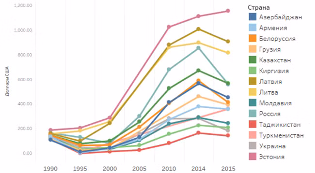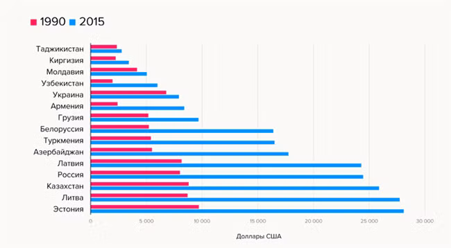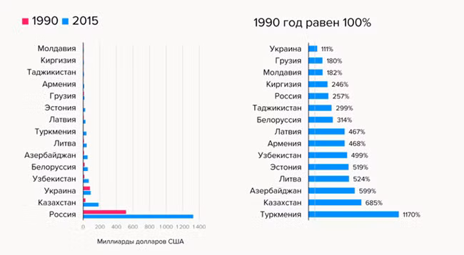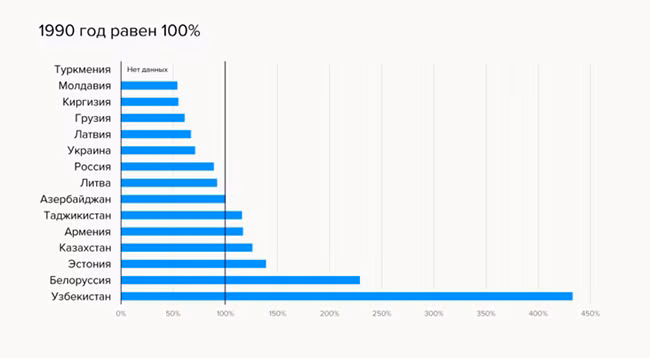 Евгений Гонтмахер: В некоторых странах произошла структурная перестройка экономики. Приоритетом стали транзитные услуги, финансы, сфера услуг, сельское хозяйство. В других странах, например в Узбекистане, была сделана ставка на добывающие отрасли. В это вложились, привлекли инвестиции. Где-то, как в Белоруссии, сохранились советские промышленные мощности. При этом уровень жизни с индексом промышленного производства напрямую не связан.