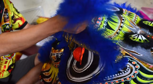 Согласно информации, взятой с сайта tinhhoa.net, работа состоит из таких этапов, как создание основы, резка ткани, шитье, рисование глаз и др. На одну голову цилиня уходит в среднем 4-5 дней.