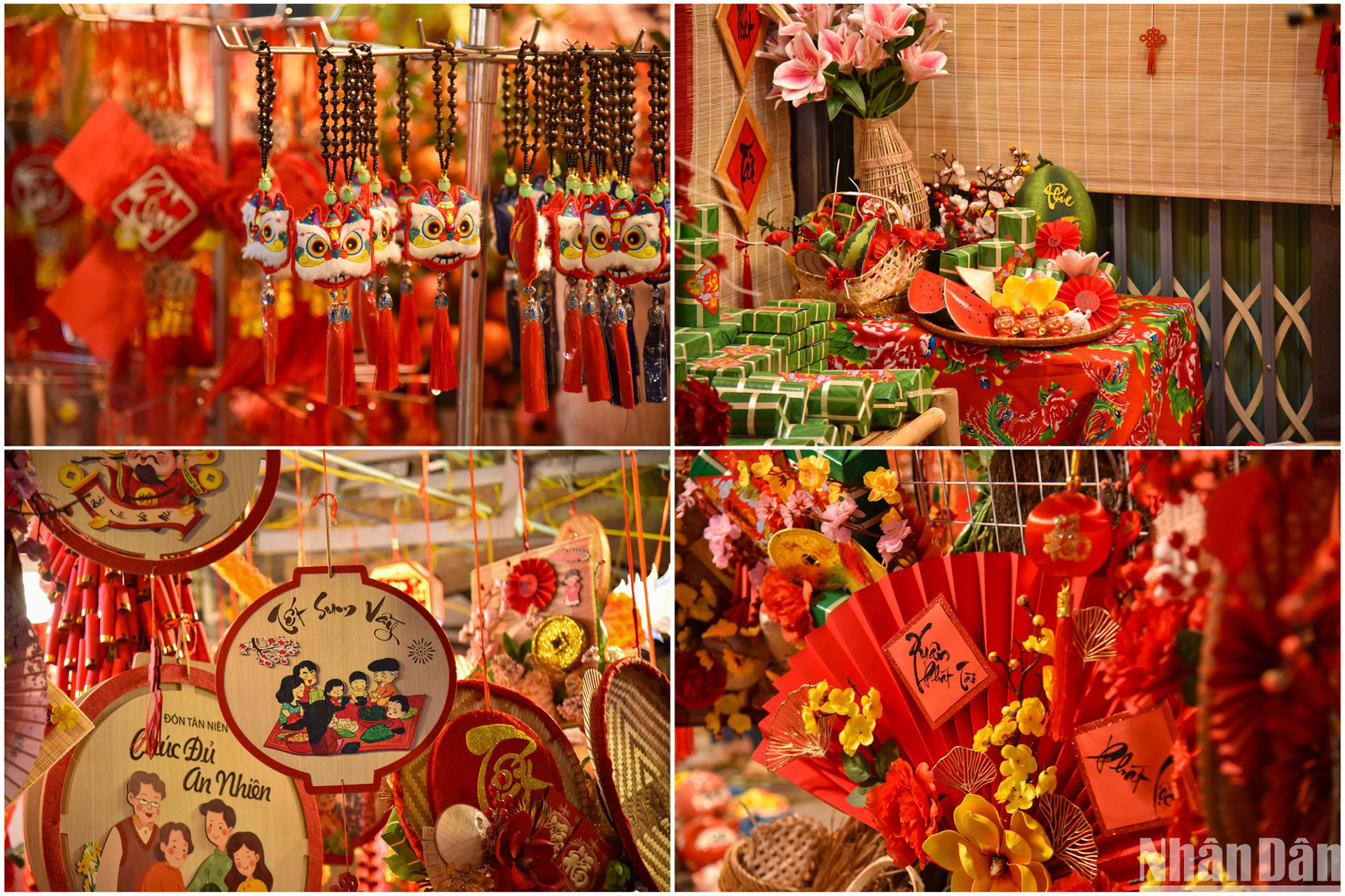 | В эти дни улица Хангма начинает носить красную рубашку с предметами для украшения дома во время Тэта, пропитанными традиционной характеристикой. |