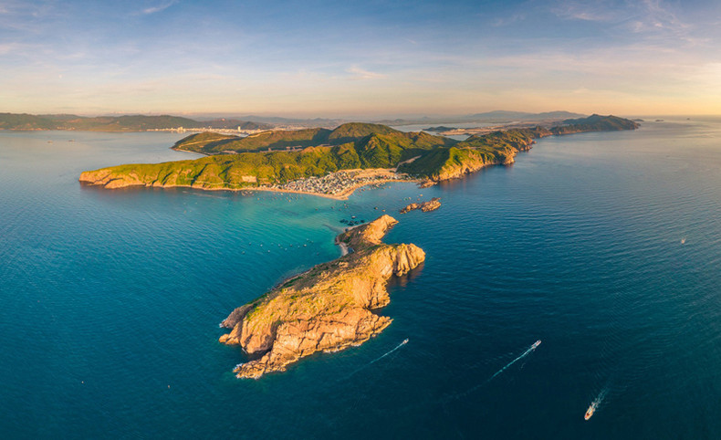 Панорамный вид полуострова Ньонхай – один из самых красивых мест для подводного плавания и наблюдения за кораллами в Кюиньоне.