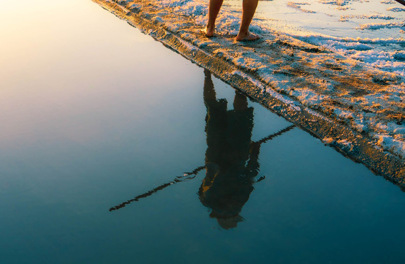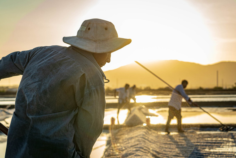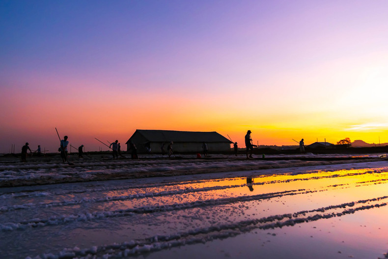 В сезон добычи соли с раннего утра крестьяне начинают свою работу на соляном поле.