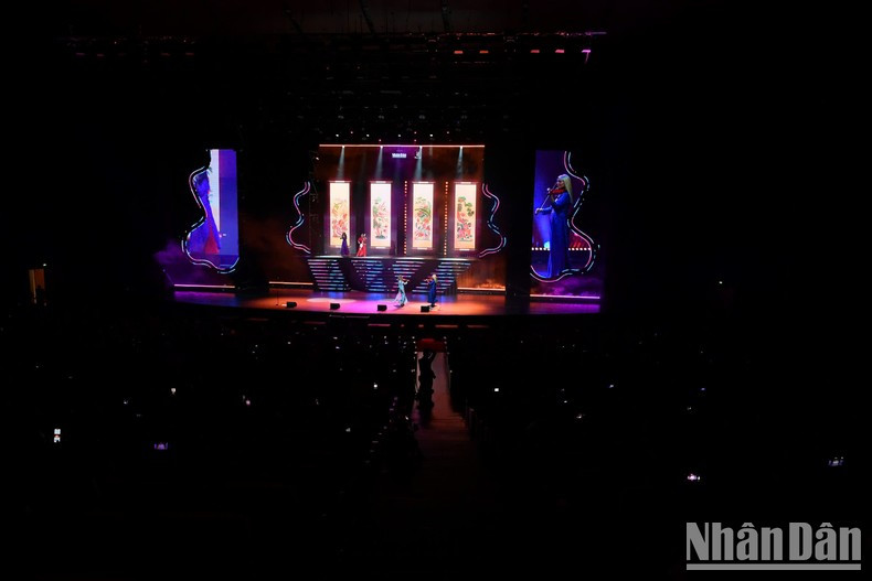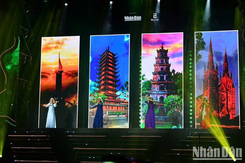 На фоне сцены уникальные образы вьетнамской культуры и туризма.