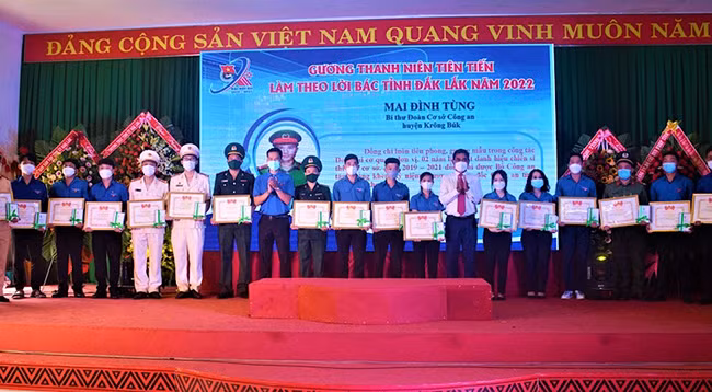 В тот же день комитет ВКСМ им. Хо Ши Мина провинции Даклак провел программу чествования 45 выдающихся молодых людей, следующим заветам дяди Хо в 2022 году.
