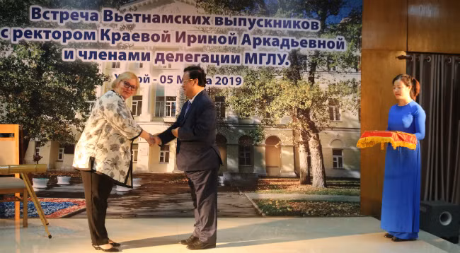 От имени выпускников МГЛУ г-н Ву Суан Хонг выразил глубокую благодарность поколениям преподавателей МГЛУ за подготовку многих выдающихся вьетнамских студентов, в том числе тех, кто занимает высокие должности во вьетнамских партийных и государственных учреждениях. Он высказал надежду, что руководители МГЛУ продолжат создавать хорошие условия для вьетнамских студентов, которые в настоящее время обучаются в этом университете.