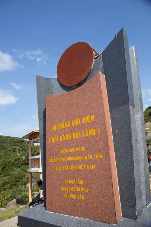 Стела с надписями «Маяк мыса Дьен. Крайняя восточная точка, где встречается первый рассвет на материке Вьетнама». Фото: dantri.com.vn