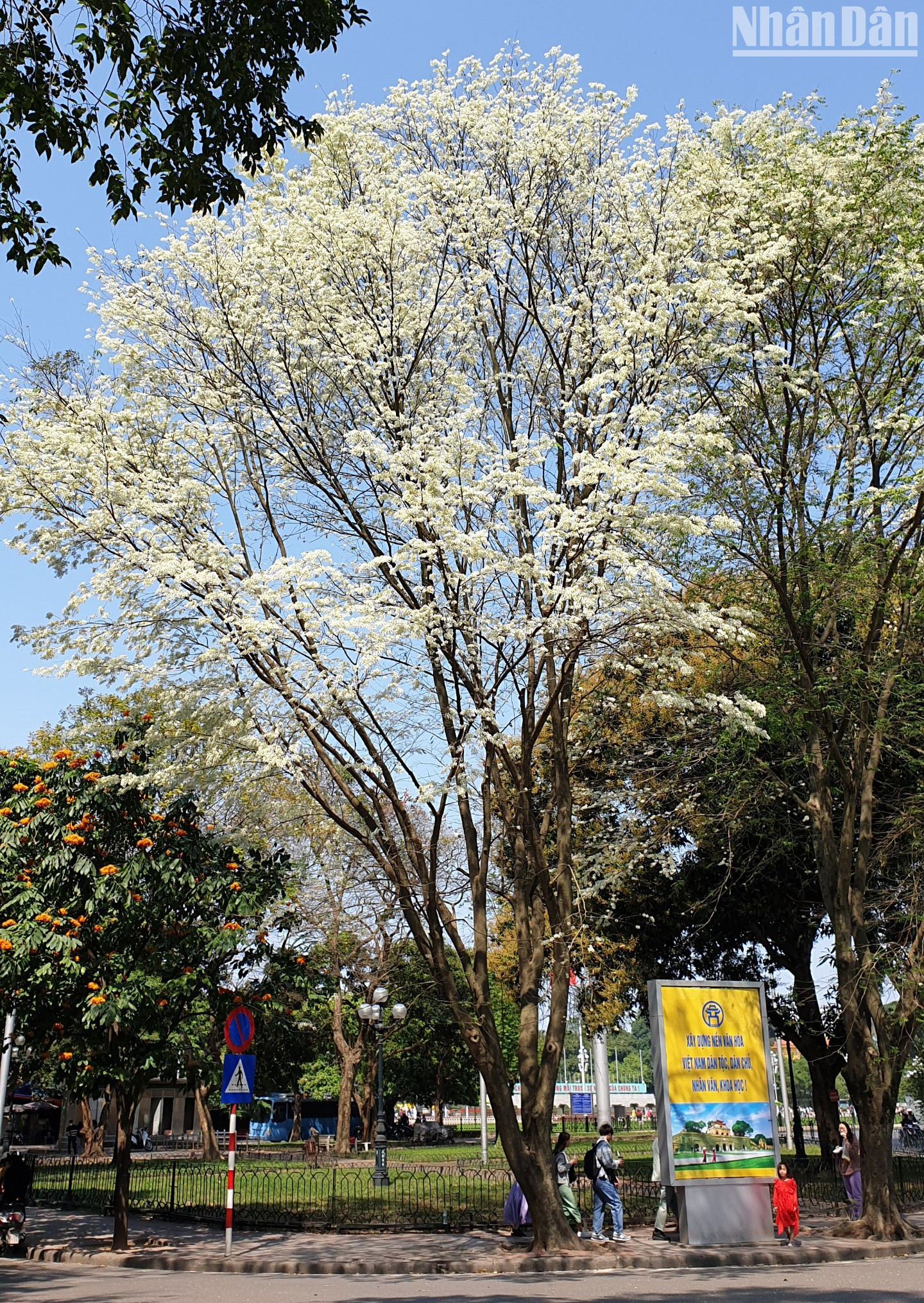 | В этом году типичные ханойские цветы тонкинской дальбергии рано расцветают. На многих улицах цветы постепенно расцветают, но на улице Дьенбьенфу два старых дерева выглядят особенно красиво. |