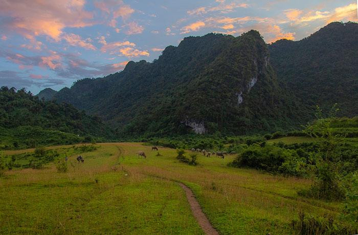 | Глубоко внутри долины находятся временные домики на сваях у местных жителей, которые ухаживают за домашним скотом и охраняют продовольственные культуры на своих участках. |