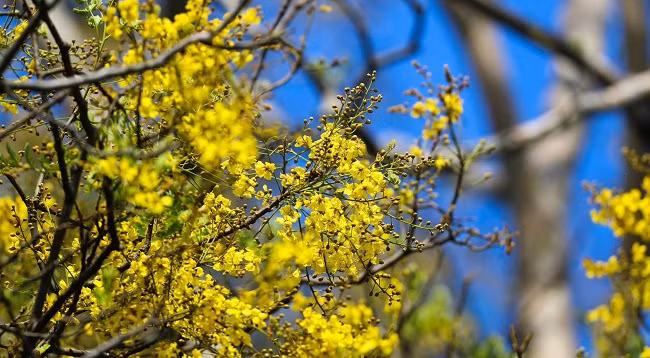 Желтые огненные деревья на полуострове Шонча обычно цветут в период с середины марта до июня.
