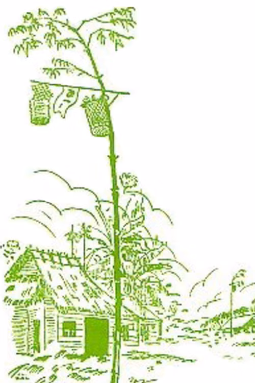 Александр де Род написал, что 30 декабря по лунному календарю перед домом поднимают «кэйнеу» – бамбуковый шест с листьями, на его верхушке висит корзина или мешочка с ритуальными деньгами. Александр де Род считал, что это деньги для покойных родителей в загробном мире. А Джованни Филиппо де Марини понял, что «кэйнеу» изгоняет злых духов.