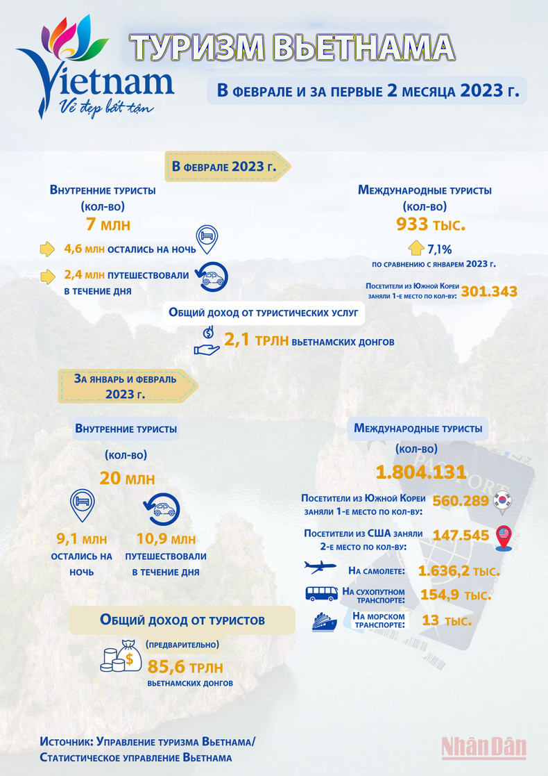 В феврале 2023 года и в первые 2 месяца 2023 года вьетнамский туризм продолжал демонстрировать много хороших сигналов, показывая многообещающую картину в этом году.