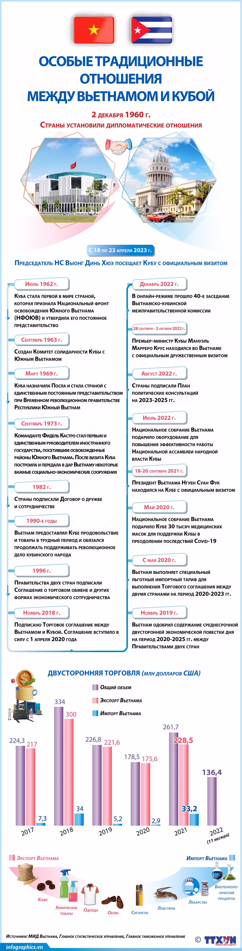 По приглашению Председателя Национальной ассамблеи народной власти (НАНВ) Республики Куба Эстебана Ласо Эрнандеса Председатель НС Выонг Динь Хюэ находится на Кубе с официальным визитом с 18 по 23 апреля 2023 года.