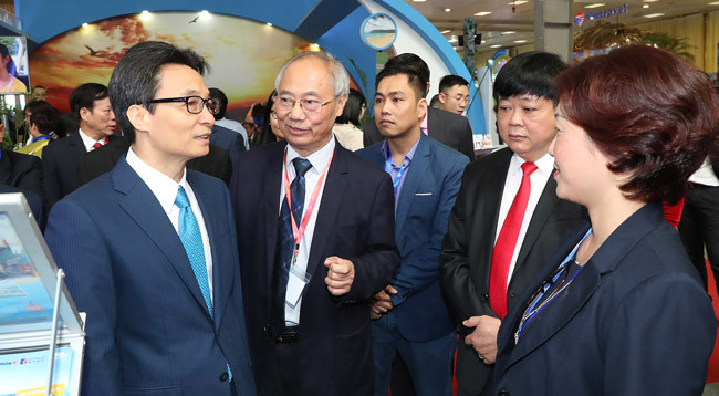 Вице-премьер Ву Дык Дам (слева) посещает Ярмарку. Фото: baovanhoa.vn