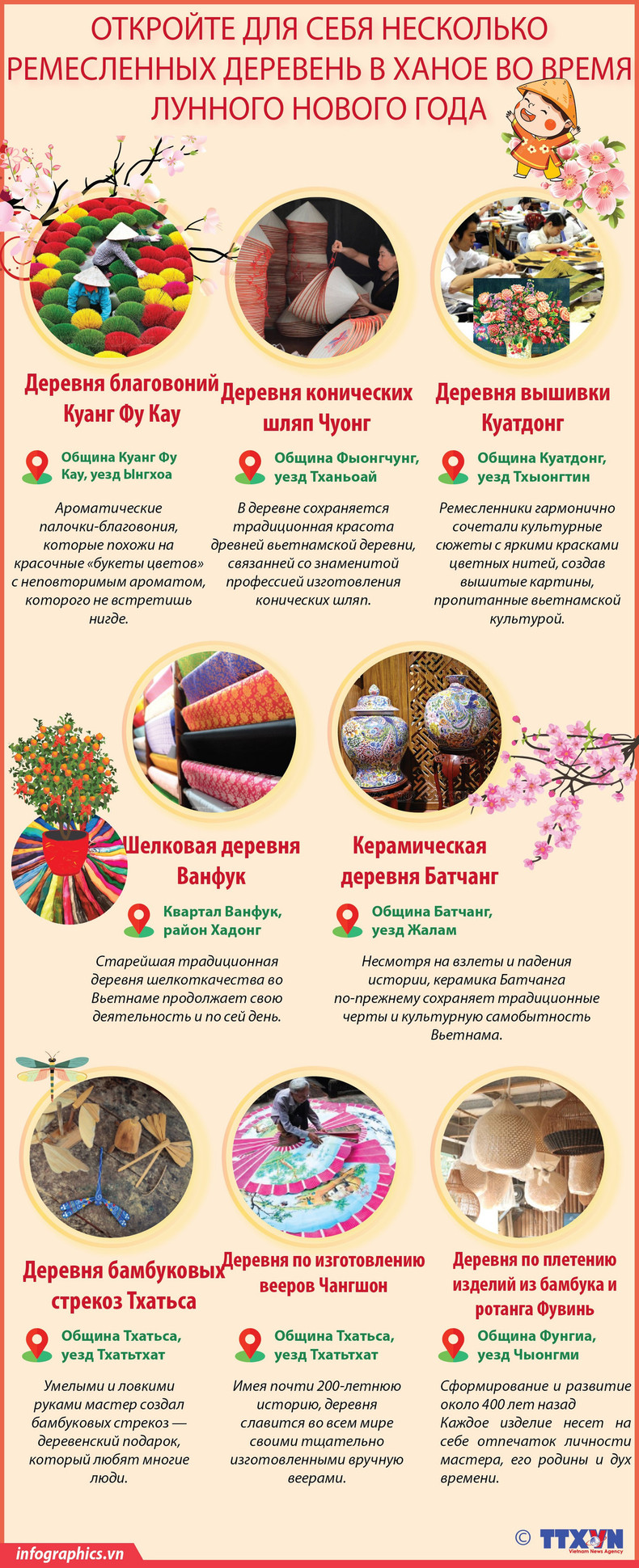 праздника Тэт туристы смогли посетить и познакомиться с некоторыми ремесленными деревнями, такими как: деревня благовоний Куангфукау, деревня конических шляп Чуонг, деревня вышивки Куатдонг, шелковая деревня Ванфук и т.д. По статистике, в Ханое в настоящее время насчитывается 1350 ремесленных деревень. Каждая