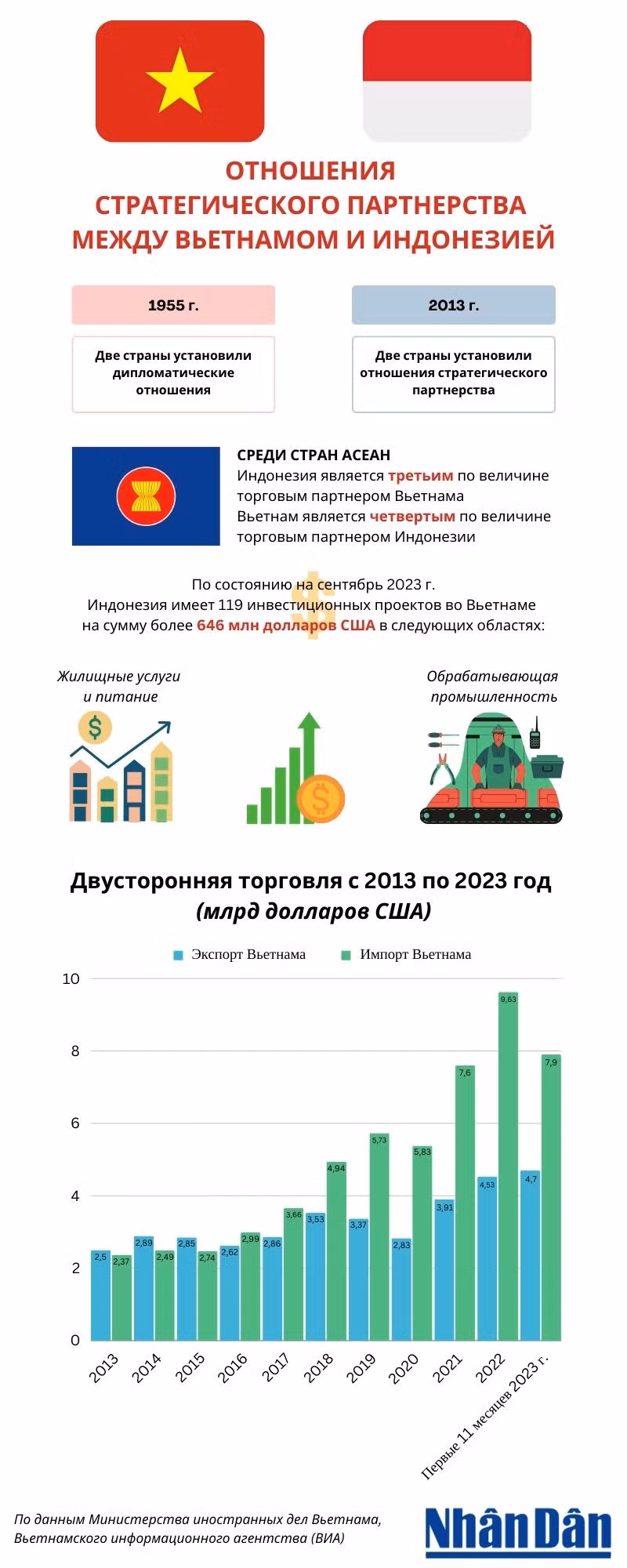 вьетнамско-индонезийские отношения активно развивались во всех областях. В настоящее время Индонезия является