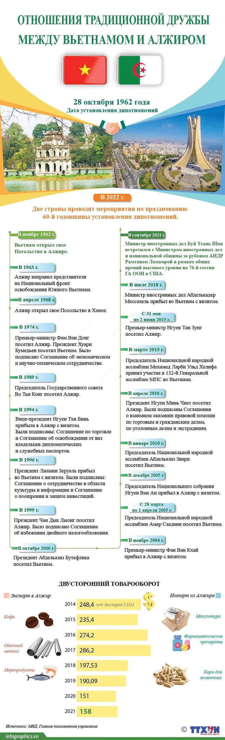 Вьетнам - Алжир дипломатические отношения 60-я годовщина установления дипотношений сотрудничестве в областях