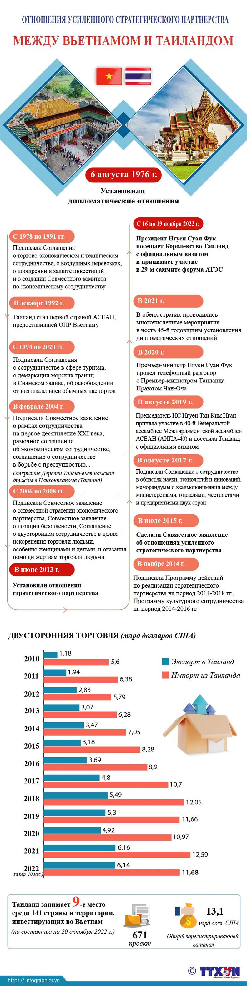 Визит Президента Нгуен Суан Фука в Королевство Таиланд совершается в контексте того, что Вьетнам и Таиланд отметили 45-ю годовщину установления дипломатических отношений в 2021 году и готовятся к 10-й годовщине установления отношений стратегического партнерства в 2023 году.