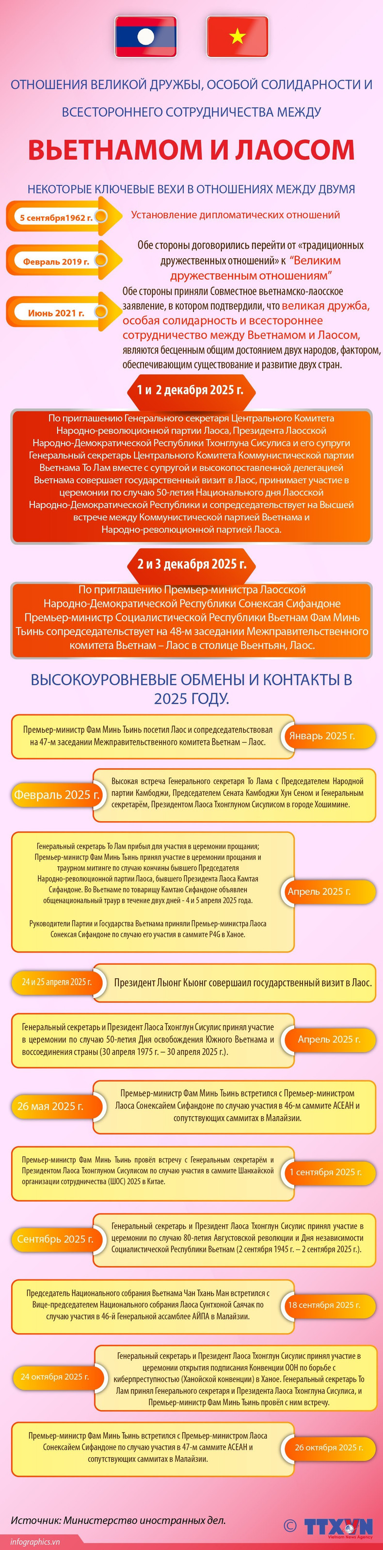 Государственный визит Генерального секретаря партии То Лама в Лаос является одним из наиболее значимых мероприятий во внешней политике Вьетнама в 2025 году.