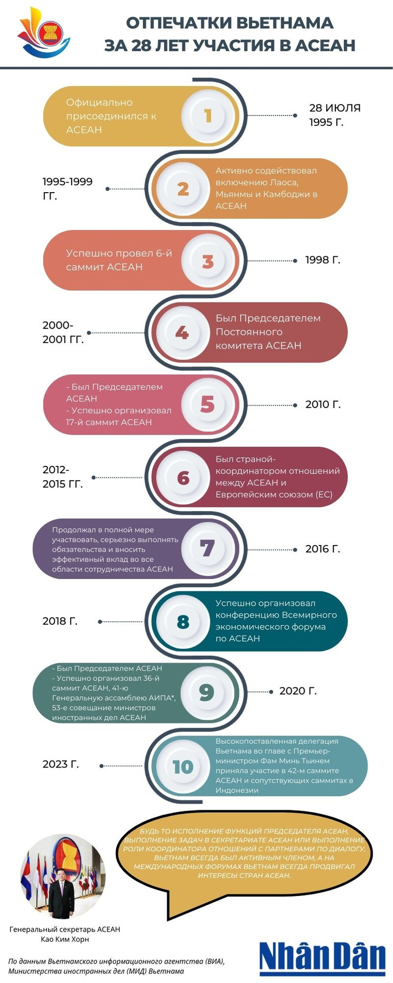 С момента присоединения к Ассоциации государств Юго-Восточной Азии (АСЕАН) 28 июля 1995 года Вьетнам всегда подтверждал свою ключевую роль, вносил важный вклад в развитие «общего дома» АСЕАН.