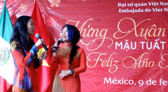 В теплой семейной атмосфере вьетнамцы в Мексике вместе с местными и зарубежными друзьями насладились различными традиционными вьетнамскими блюдами по случаю Тэта и песнями о встрече весны в исполнении вьетнамских детей.