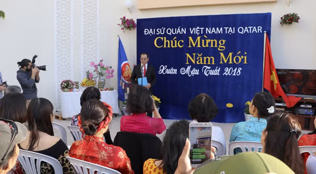 Посол Вьетнама в Катаре Нгуен Динь Тхао поздравляет вьетнамцев, проживающих в Катаре, с Новым годом. Фото: baoquocte.vn
