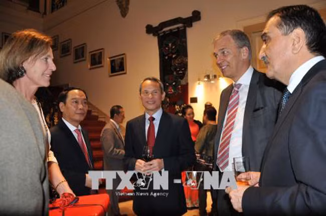 Посол Вьетнама в Бельгии Выонг Тхыа Фонг обменивается с гостями на банкете. Фото: VNA
