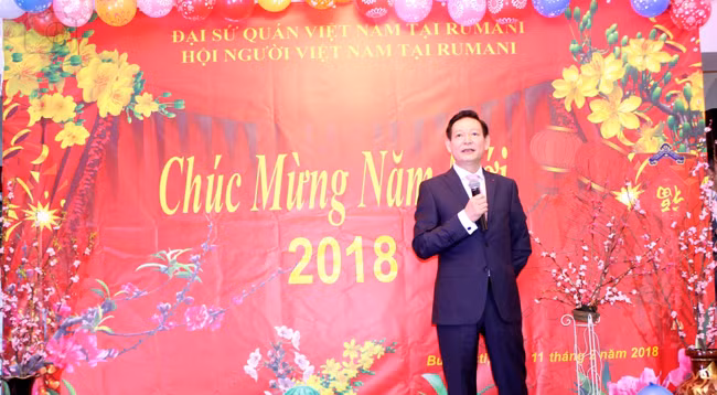 Посол Вьетнама в Румынии Чан Тхань Конг поздравляет вьетнамцев с Новым годом по лунному календарю. Фото: Посольство Вьетнама в Румынии