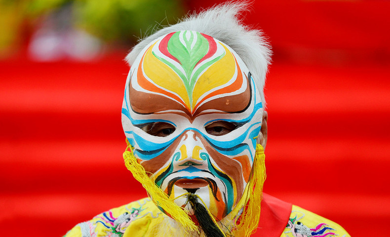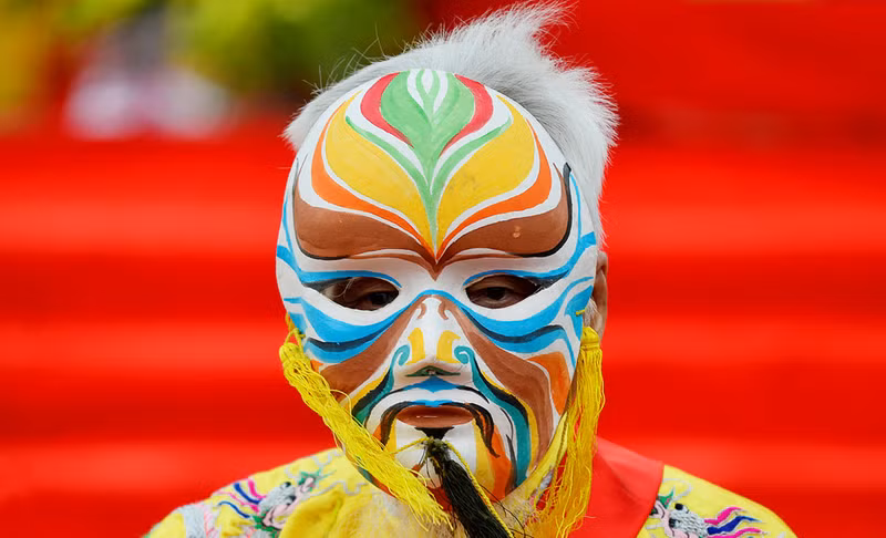 После обряда он надел маску короля Ле Дай Ханя. За ним последовали старики.