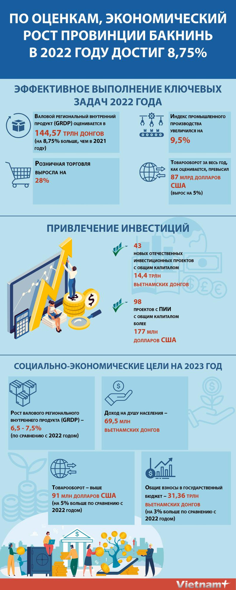 В 2022 году провинция Бакнинь эффективно выполнила ключевые задачи года. Согласно оценкам, провинция выполнила 9 из 15 поставленных показателей, а рост валового регионального внутреннего продукта (GRDP) достиг 144,57 трлн вьетнамских донгов.