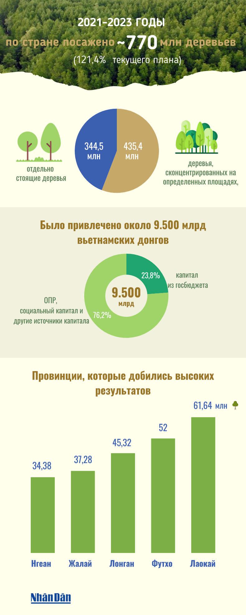 За три года (2021-2023 гг.) реализации проекта «Посадим один миллиард деревьев в период 2021-2025 гг.» по всей стране было посажено около 770 миллионов деревьев, что составило более 121% текущего плана.
