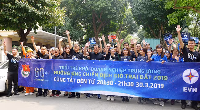 Молодые люди в г. Хошимине принимают участие в акции «Час Земли – 2019». Фото: tuoitre.vn