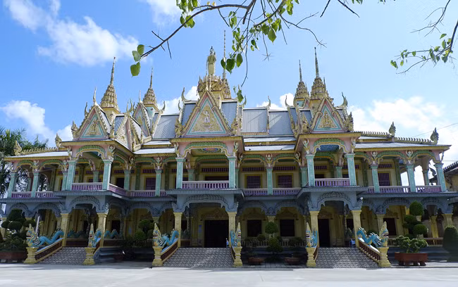 Архитектура пагоды Шомронг характерна для архитектуры кхмерсних пагод в юго-западной части страны. Фото: dulich.petrotimes.vn