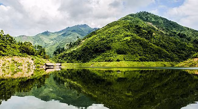 Чистая голубая вода отражает огромные горы и леса. Фото: baonghean.vn
