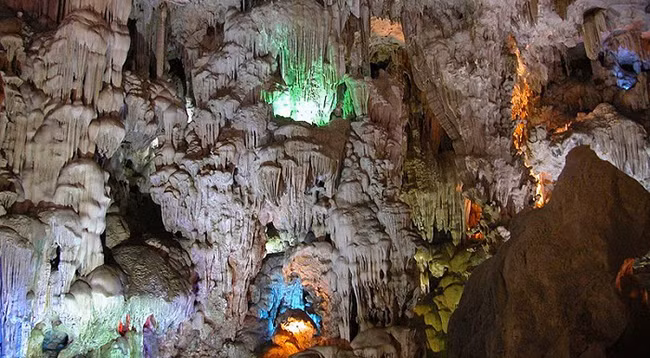 Пещера Мау также известная как пещера-аквариум. Под куполом пещеры сталактиты блестят, как будто они позолочены или посеребрены с волшебными фигурами, что заставляет нас чувствовать себя заблужденными в таинственном и ослепительном небесном дворце.